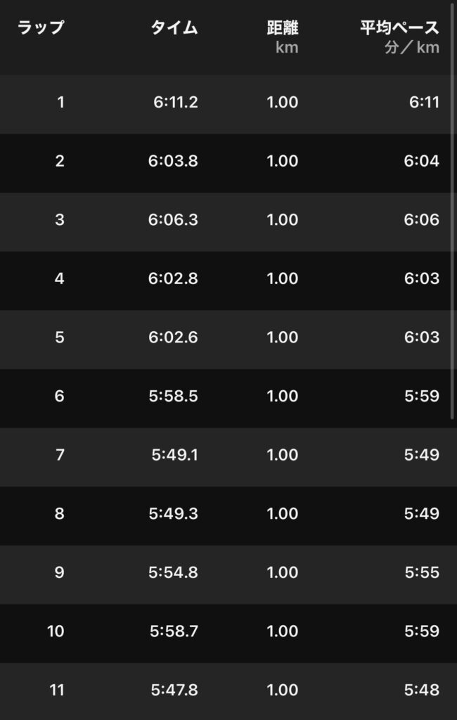 - ペース: 6:10/km