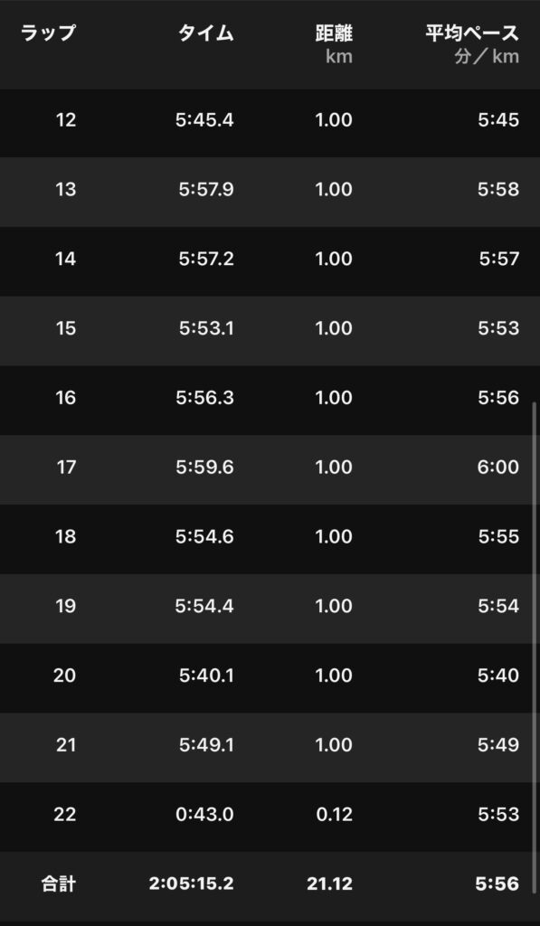 2週目からは安定のキロ6ペース。